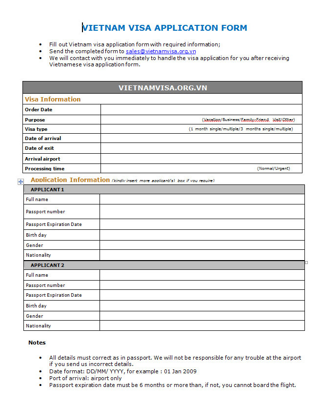 Download this Vietnam visa application in case you do not want to complete the online form: